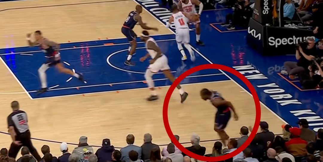 当下没人意识到问题有多严重,甚至连转播镜头都没给太多特写。但只要你足够细心,应该就能发现,当时伦纳德回防时的步伐就已经不对劲了。